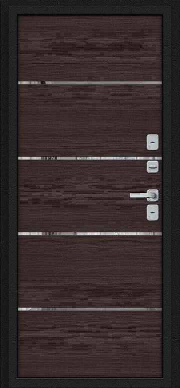 Надежная входная Дверь Браво Thermo Лайн/BChrome Букле черное/Wenge Melinga премиум класса по цене 46 117 руб. Большая толщина стали защитит от проникновения в ваш дом, квартиру или коттедж. Используется очень качественная фурнитура: замки, цилиндры, ручки, защелки. Покрытие и отделка двери изготовлено под внимательным контролем производителя. Дверь имеет долгий срок службы и гарантию.